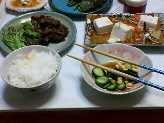 (豚肉の生姜焼き、あんかけ豆腐、酢のもの)