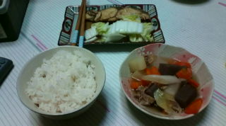 さて、めちゃめちゃ久しぶりに晩飯をつくりました(白ひらすのゆず風味焼き・豚肉と野菜の煮もの)。