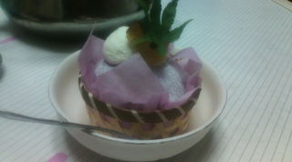 紫芋を使ったケーキで、表面は饅頭のような生地でできていました。甘すぎないため、私も食べやすかったです。