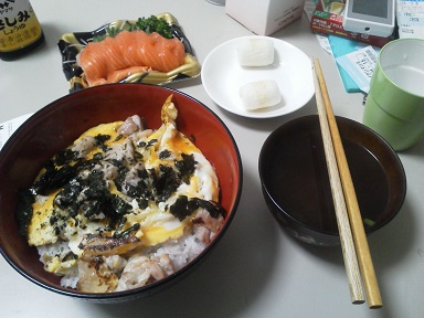 左下のものなんですが、焼きすぎたためただの卵とじ鶏肉丼のようなものになってしまいました(^^;)。